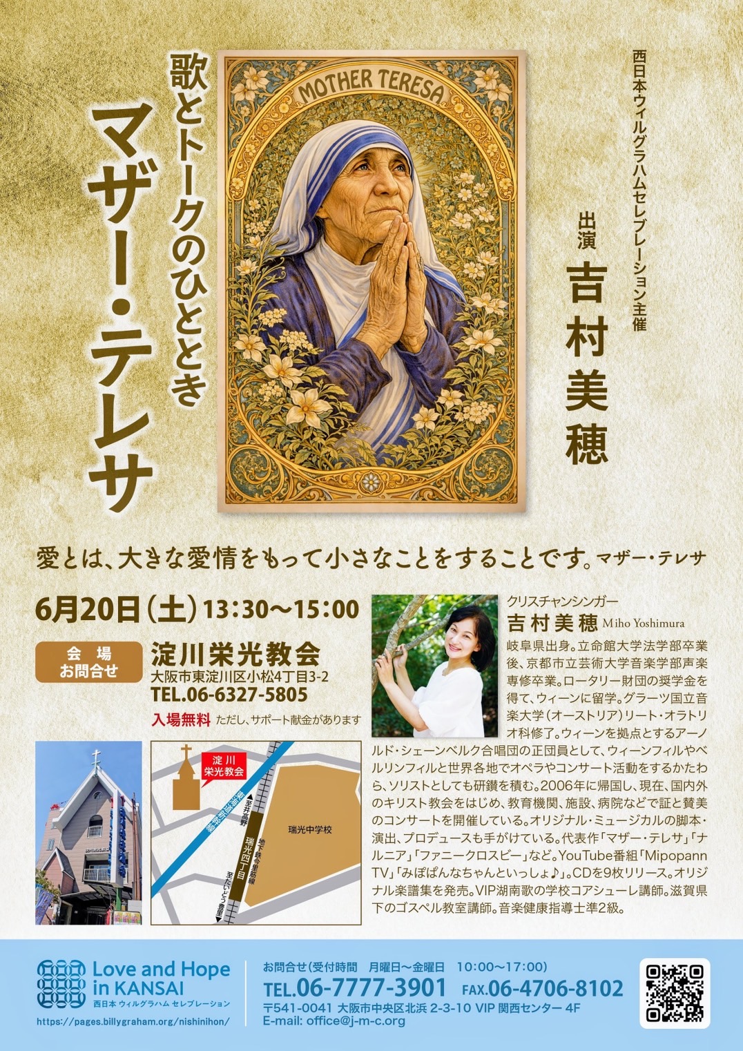 6月20日(土) 歌とトークのひととき マザーテレサ