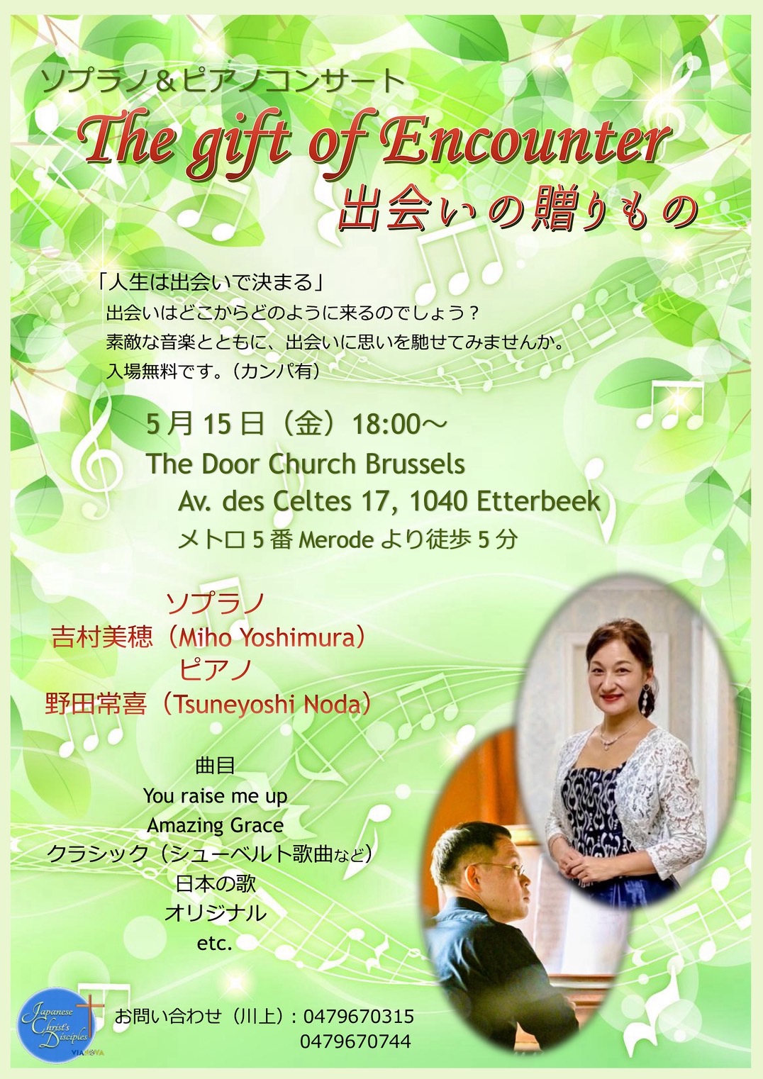 5月15日(金) ソプラノ&ピアノコンサート The gift of Encounter 出会いの贈りもの